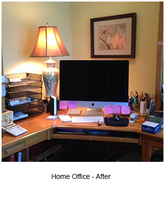 “Working with Geri over the past several months has been life changing. Through her non-judgemental, practical tips, Geri teaches you organizational systems and techniques that work for you and your particular lifestyle, allowing you to maintain these systems on your own. This has provided much order in our busy life by having a logical place for everything, and an organizational s ystem that saves time in the long run. You have to see it for yourself; you’ll be happy you did!”
